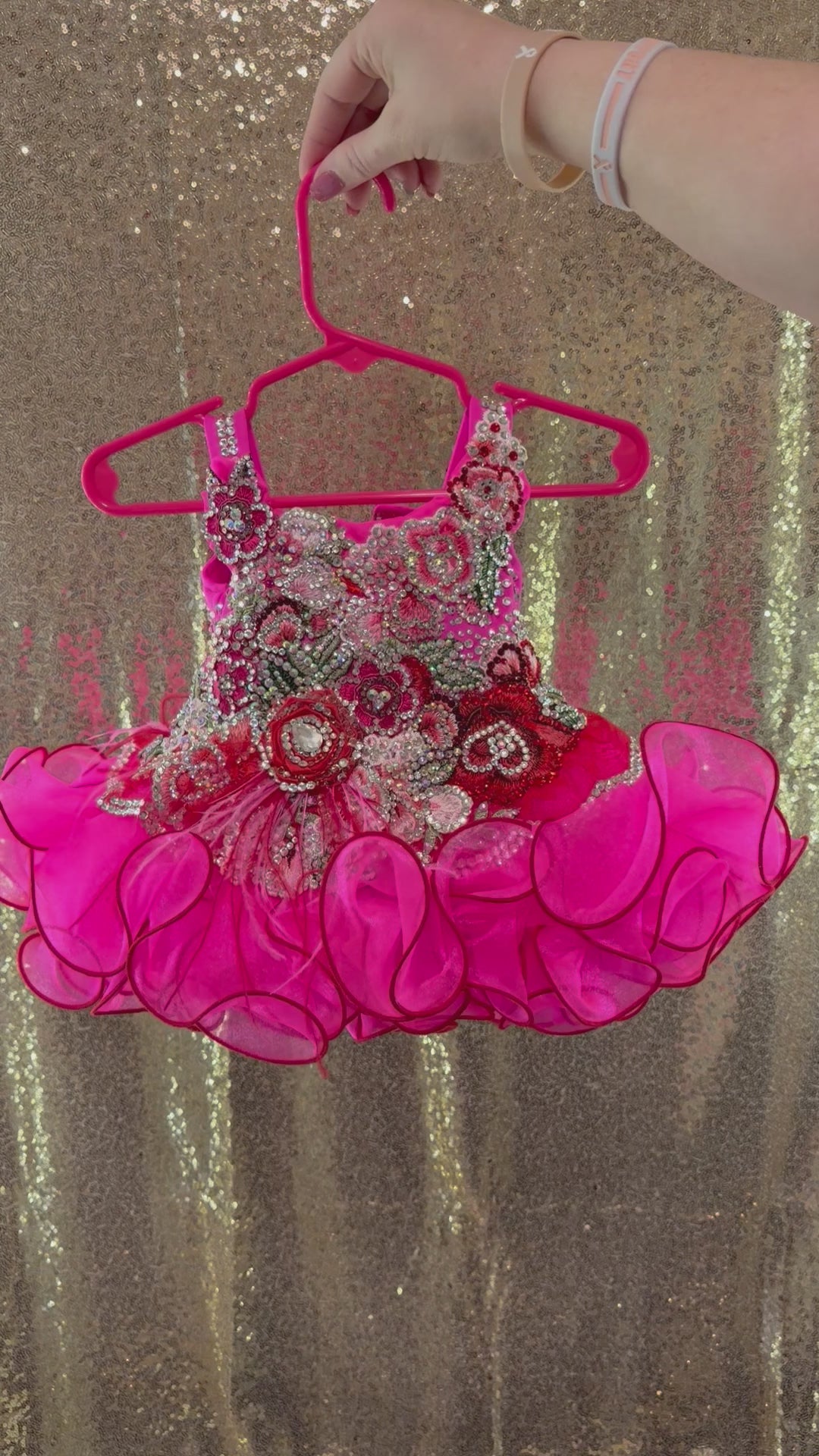 Steal hearts from the very first step on stage with Pink Radiance, a breathtaking infant pageant gown by Gemics designed to shine in every way. These tiny gowns truly get us every time , and this one is no exception. Crafted with exquisite attention to detail, this dress is an undeniable eye-catcher and a true judge stopper.